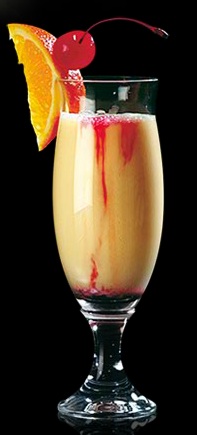 Mix all ingredients without the cherry juice with ice in a shaker. Add the cherry juice once poured into a hurricane glass.