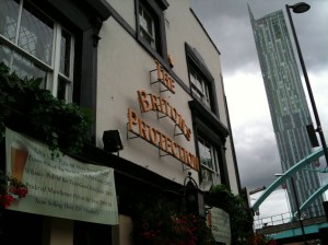 Classed as Manchester’s best bar for whisk(e)y, The Briton’s Protection has got it all. On the corner of Great Bridgewater Street, the outside decor gives it a traditional pub feeling, and with hanging baskets from every window, it oddly doesn’t look out-of-place nestled in Manchester. Once you step foot inside you enter the long bar area where your greeted with a smile by both barman and customers. On my most recent visit, I of course opted for a whisky, but they do have other varieties available including Guinness, Staropramen, Strongbow and Carling on tap, and a range of spirits including the new Kraken spiced rum and Monkey Shoulder. Wines are available as well as ales including Tetley, Beartown and Angel Tears.