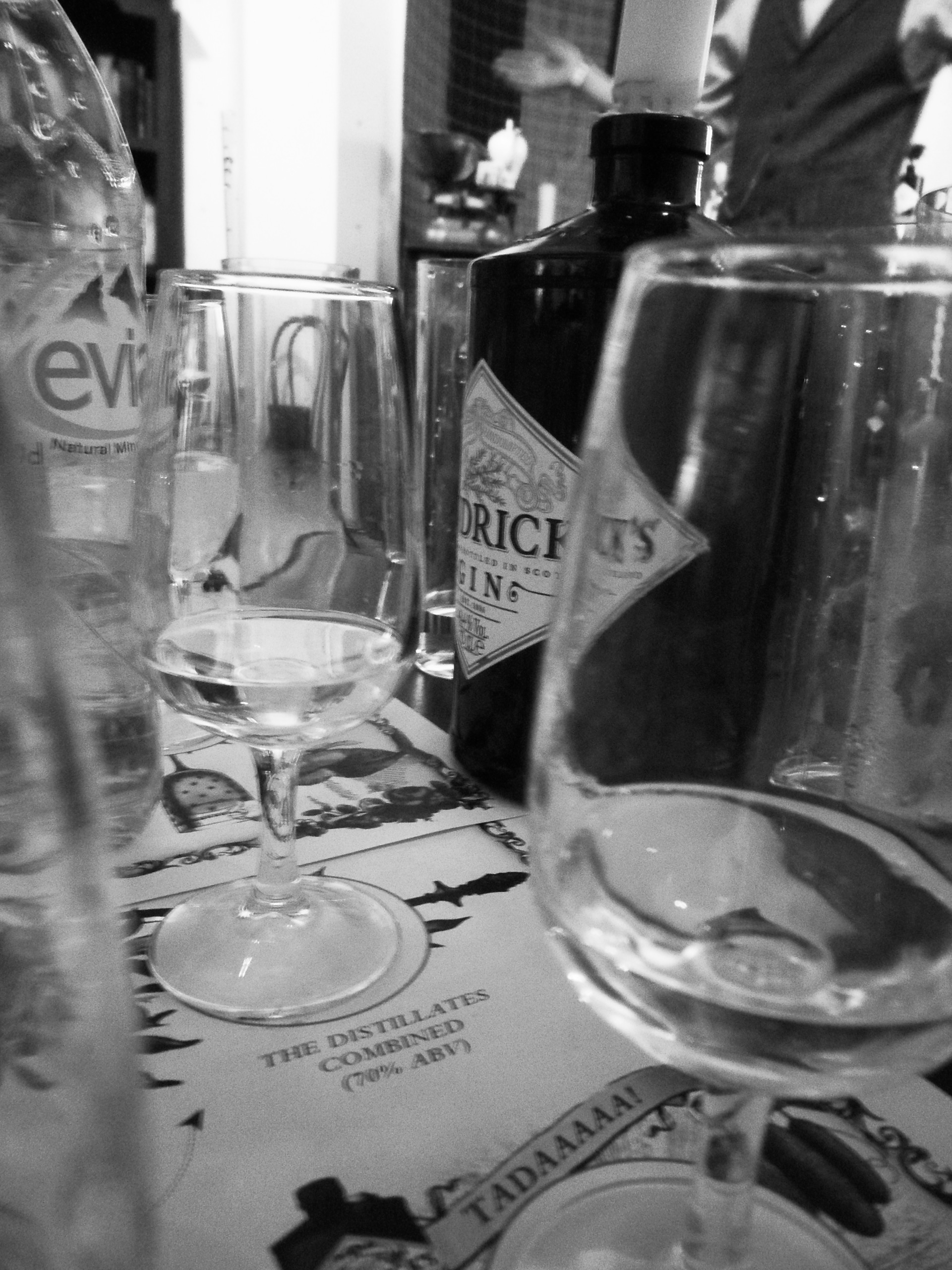 Hendrick’s. A gin that signifies the quirky, the pompus and the extraordinary – and they didn’t disappoint! Taking over a small premises near Covent Garden, they transformed the place into a Victorian haven full of extravagant ornaments, quaint wooden tables, a traditional stall serving Hendrick’s cocktails and even a Hendrick’s bath! The tasting session i was to embark on though was situated down a flight of wooden stairs leading to a ‘theatre’, with wooden chairs and tables scattered around and Victorian styled umbrellas hanging from the ceiling. Duncan McRae (the Hendrick’s UK ambassador) was on hand to greet us all with a G & T as we sat to listen about the history of Hendrick’s.