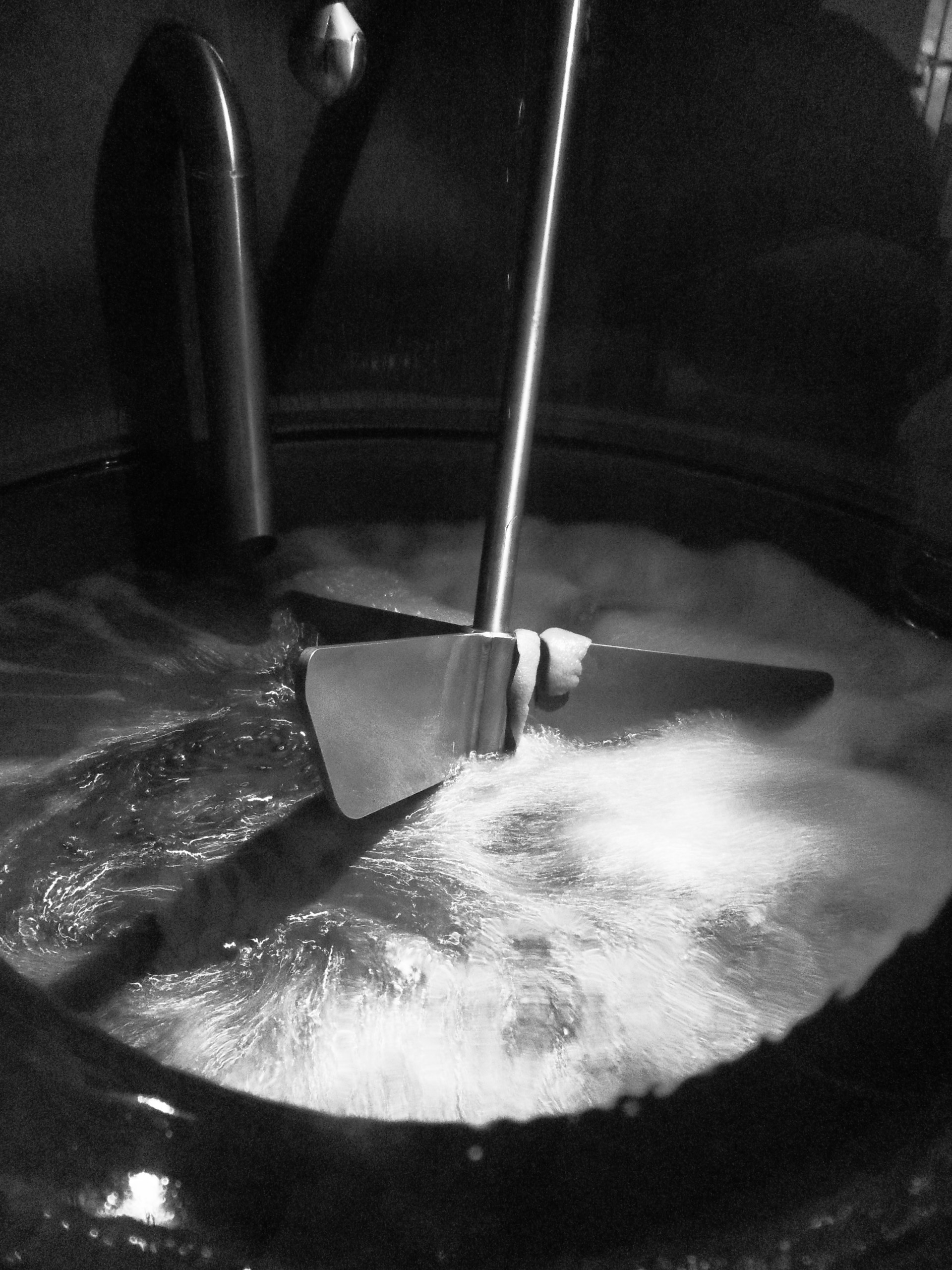 As the vapours travel along the pipe and away from the still, they start to condense and fall down another pipe into a cooling chamber where it turns back into a liquid. It’s held for a short time and then heated once more before passing through the condenser and becoming liquid again. It then sits in the spirit safe where it is ‘cut’. This means the removing of the initial product (named the head) and the end of the product (the tail) which are both of poor quality. The middle is kept (the heart) and it’s pure enough that it doesn’t need to be filtered. 40% of the heart is kept, diluted with pure water from Lydwell Spring in the Cotswolds, and bottled to become their vodka. The remaining 60% goes on to make the gin.