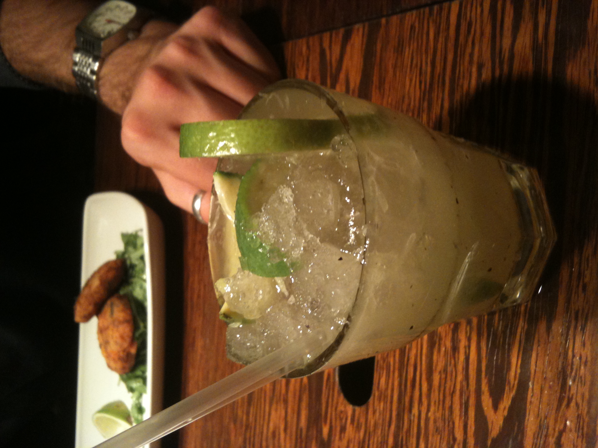 The next night, The Spirited Ventures trail took place (the theme of the night was that all the restaurants we will be visiting are owned by Living Ventures). Once again, we met in Albert Square and Tom hailed a taxi for us to travel to our first port of call – Grill on New York. A smaller group than the previous night, we were able to sit round one of the restaurants circular tables, and enjoyed the cocktail White Lady. The drink called for the use of Oxley gin, Cointreau and lemon juice to create a great appetizer! Duck spring rolls were brought out for us to compliment while we introduced ourselves to each other and Tom talked a little about The Liquorists and Living Ventures.
