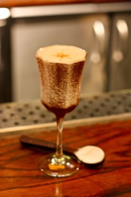 Combine all ingredients in shaker over ice. Shake extremely hard and strain ingredients into a glass that has been dusted with Luwak Powder and Chocolate. Garnished with edible Chocolate Spoon.