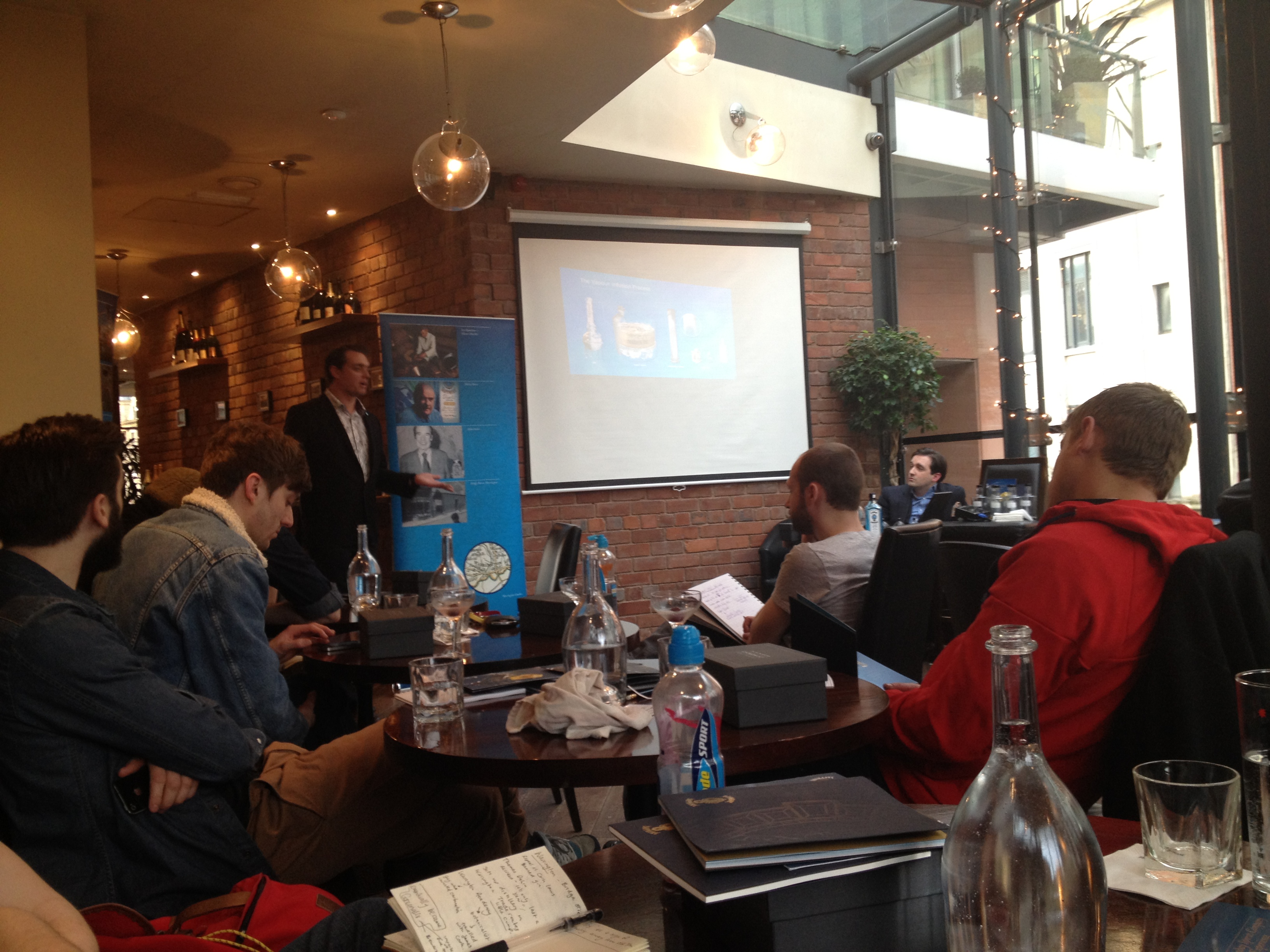 The aroma kit was then introduced. The creator of this unique idea was by a gentleman named Dr. George Dodd of the Aroma Academy, an aroma scientist and bio-chemist as well as a Master Perfumer, and he selected 24 different vials, each with a unique aroma, that gives the clearest indication to both bartenders and consumers what actually makes each gin so unique. Each vial is numbered 1-24 with a label displaying the botanical inside. We started with the first four vials, each containing a different style of juniper. Using scent sticks, we dipped the ends into each and discussed the dominant aroma that hit the nose first. We were also asked to describe any trigger memory scents, for example, the second vial housed green juniper, yet it reminded me of fresh leather. With the nosing of the four juniper scents, we then worked out which of the two spirit samples from our tasting mat was created using juniper vapour, and which was created using juniper that was steeped and distilled. Vials of violet, orange, forest floor and pepper were then nosed so we could get a better understanding of citrus, dry root, spice and floral, again trying to see if the aromas found triggered any memory scents (rather odd to find the scent of forest floor reminding me of a garden centre!). We then nosed and tasted two more samples from our tasting mat, this time a blend of coriander, juniper, angelica and liquorice. Again we had to differentiate between a spirit that had been steeped and distilled or mixed after a vapour process. The results found that after being created using vapour, it had a clean, more bold flavour hit to the nose, compared to a smooth, buttery, creamy texture given from the steeped and distilled method.
