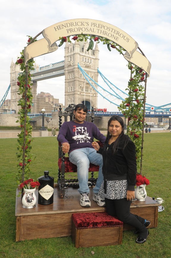 So yesterday was that most unusual day where women had the opportunity to propose to their partners. Over the past month, Hendrick’s have taken advantage of this peculiar time by running the ‘Ladies School of Nuptial Conquest’ and ‘School for Scoundrels’ at bars around the country, teaching the aspects of how to woo your man, or how to counteract your ladies advances. The school exam culminated to one day – Wednesday 29th February, where on the banks of the River Thames, Hendrick’s throne was set up for the chance to propose, with a Hendrick’s cocktail thrown in for good measure!