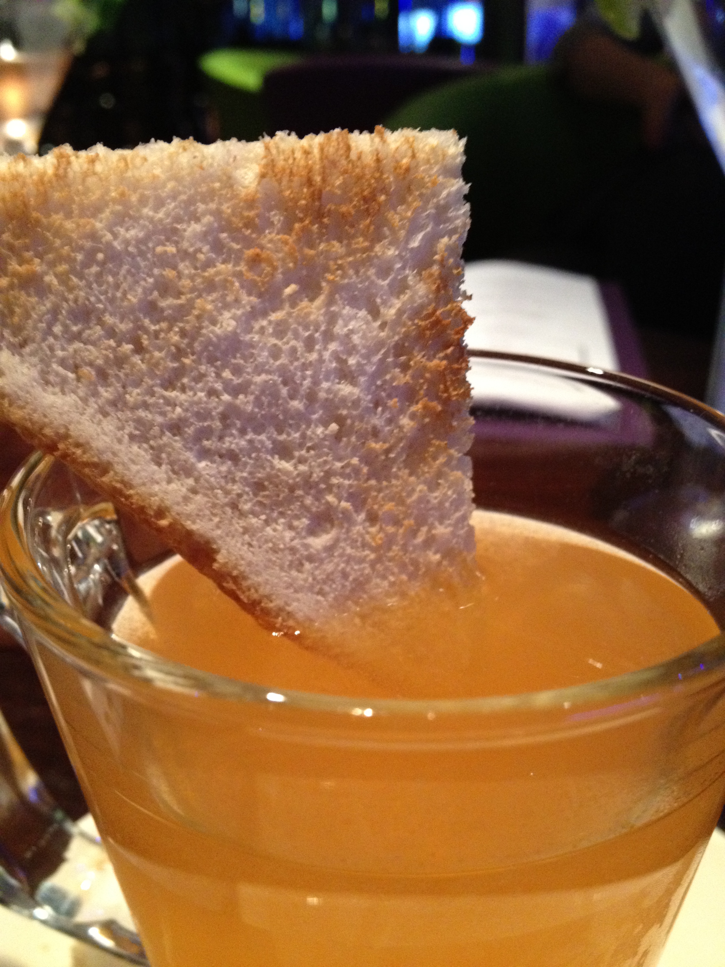 First up I went for the unusual – Gentleman’s Smith (£7.50). A mix of Gentleman Jack, creme de cassis and syrop de fraise with a layer of John Smith’s bitter created a drink reminiscent of an Belgian style strawberry beer, but had a crisp, clean texture with subtle hints of the Gentleman Jack. A house speciality was the next to be created, the 235, which had a blend of Disaronno Amaretto, creme de fraise, and strawberry puree charged with Champagne (£8.50). A surprising instant hit of fizz with a tangy feel, and not as sweet as expected and had a fantastic long finish. The Bartenders Breakfast (£7.50) came next, with the use of Beefeater gin, marmalade, Aperol, limoncello, Koko Kanu and citrus shaken with sugar and garnished with toast. Personally, one of the best Breakfast Martini’s I’ve tried! Very fresh with lots of fantastic marmalade flavours and citrus coconut aromas mixing nicely as its sipped.
