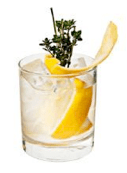 Combine all ingredients together into an ice filled tumbler and stir. Add the lemon wedge and garnish with a fresh sprig of thyme and a strip of lemon peel