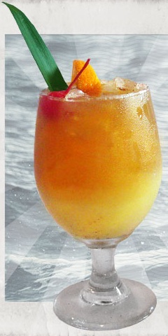 Fill a mug or goblet with ice and add the ingredients. To mix, pour once or twice back and forth into another glass. Grate fresh nutmeg on top and enjoy this most delightful of tropical drinks.