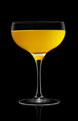 Shake with ice and strain. For guaranteed effect, place a maraschino cherry in the bottom of the glass. Serve the cocktail in a tumbler.