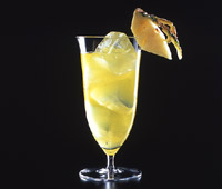 Shake the ingredients vigorously and strain into a hurricane glass. Garnish with pineapple wedge.
