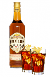Pour Rebellion Spiced over ice and top with Cola and garnish with a slice of lemon.