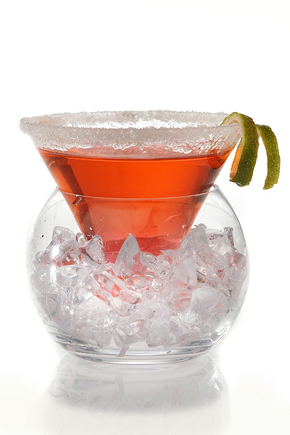 Mix all ingredients into a shaker with ice. Shake well and strain into a martini glass. Garnish with a twist of lime and a sugar rim.