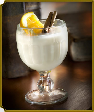 Pour Bénédictine into the glass, add ice, and top up with cold milk. This recipe can also be done with soya milk or hot milk. Garnish with orange slice and cinnamon stick.