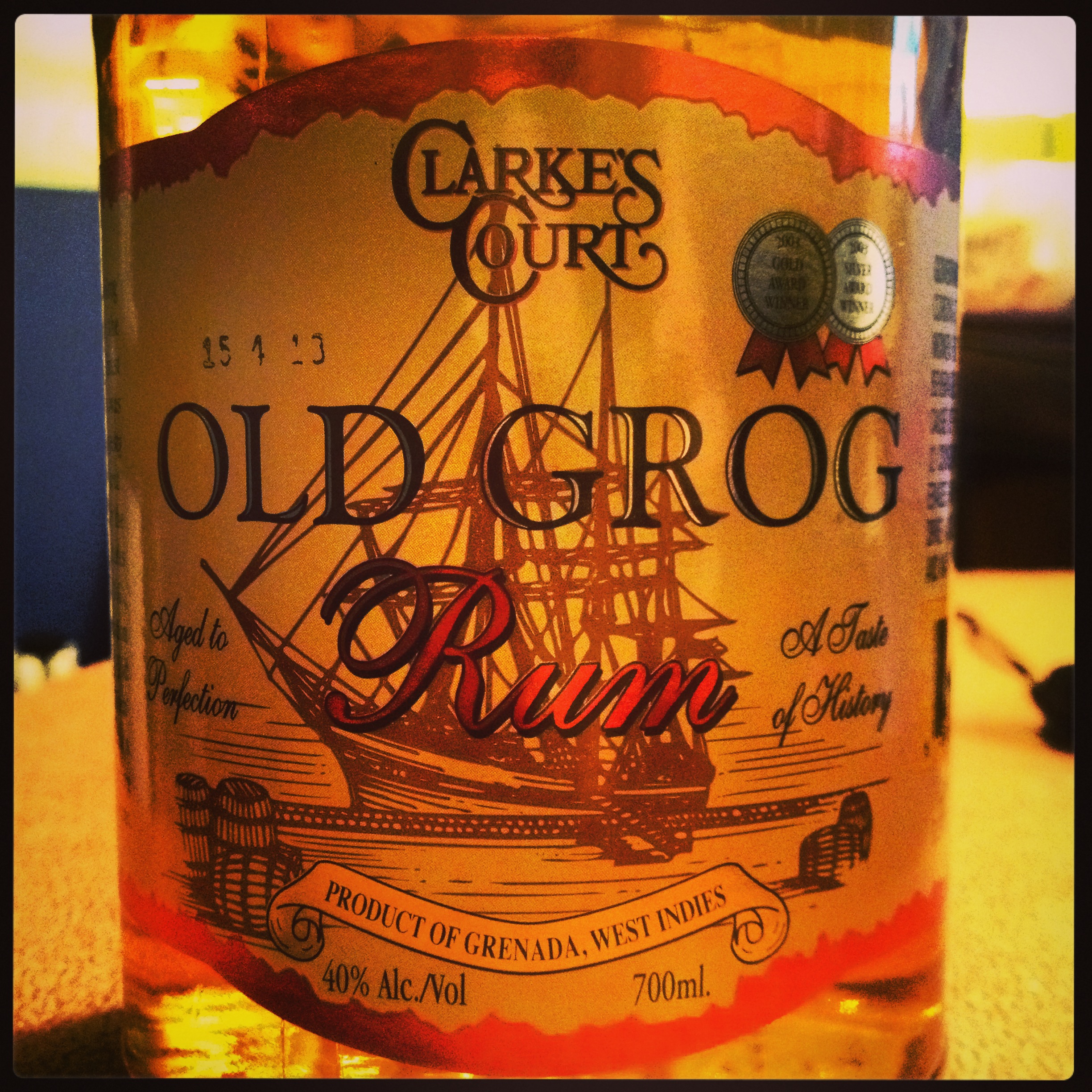 Grenada Distillers produce fourteen different varieties of rum under the Clarke’s Court banner, with two that Ramsey Rum look after here in the UK. One of them is the Old Grog (the other being #37), which pays homage to the early days of Grenadian rum when it use to be shipped to his Majesty George III of England. In order to identify the King’s rum, the barrels were initialed G.R.O.G. which is the abbreviation to Georgius Rex Old Grenada. Old Grog is a blend of molasses rums ranging in age from 4 to 10yrs, although no age statement is claimed on the bottle. Both whisky and bourbon barrels are used in the ageing of the rums.