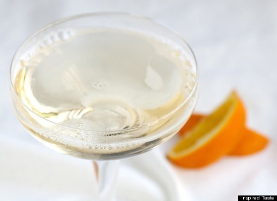 Add St Germain and Champagne to a flute or coupette glass then add a spritz of orange juice.