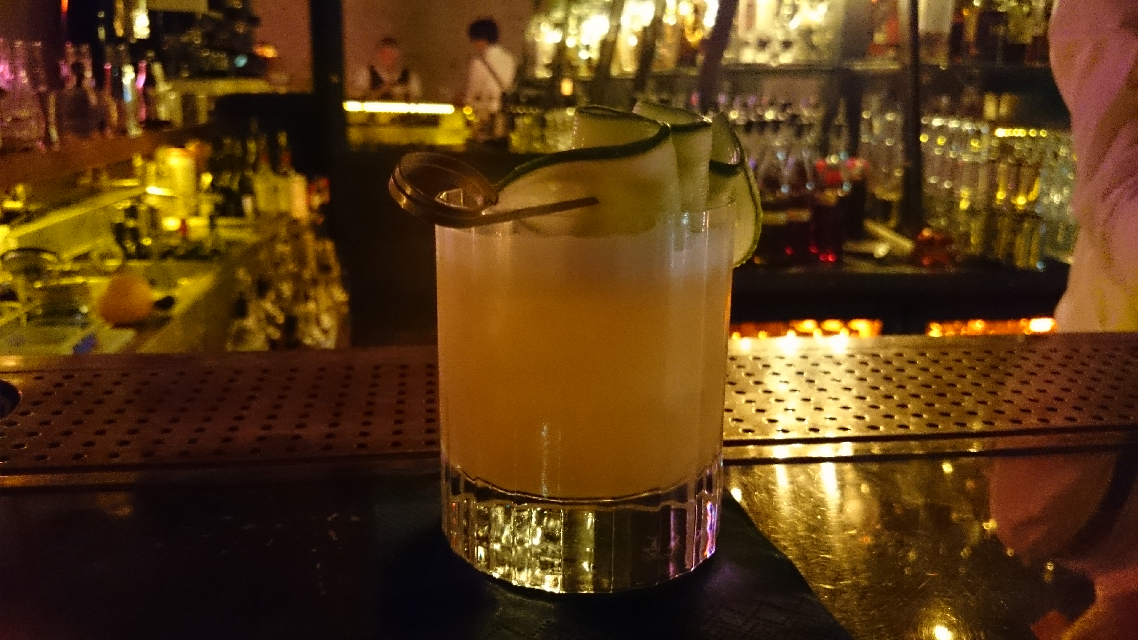Taking a seat in the leather backed bar stools, my pilot for the evening would be the knowledgeable Andrei, who whipped up a recipe named Morning Dew, combining Four Roses Small Batch Bourbon, lemon, elderflower, star anise syrup, egg white and topped with an absinthe spray, housed within a glass filled cut glass tumbler and a folded cucumber strip to garnish. As expected, a soft absinthe and cucumber blend on the nose, with light elderflower and soft citrus on the palate. Short, slightly dry and with slight kicks of the absinthe and Four Roses on the finish.