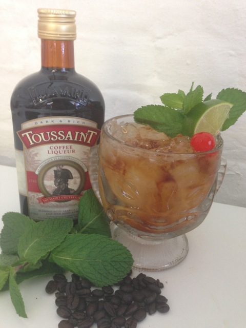 Shake and strain over cubed ice. Float 20 ml Toussaint on top. Garnish with a mint sprig, lime wedge and a cocktail cherry.