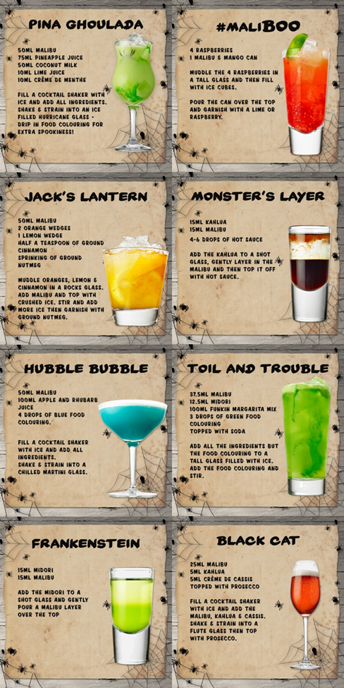 Malibu have pulled together a Malibu Monster Mash of spooky serves including some twists on some classics and new cocktails that could raise the dead.