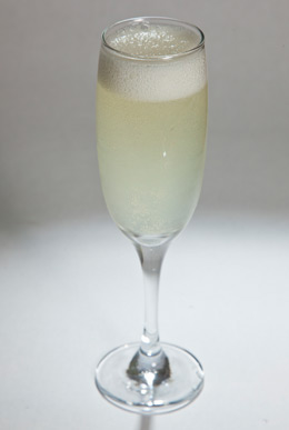 Fill a cocktail shaker halfway with ice. Add the aquavit, lime juice and simple syrup. Shake well, then strain into a Champagne flute. Top with the sparkling wine and garnish with the twist of lime peel.